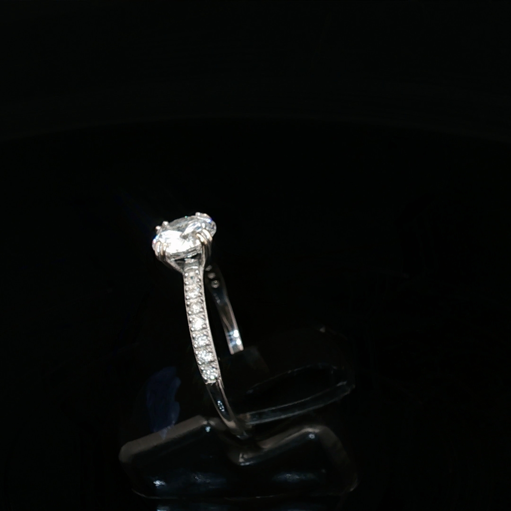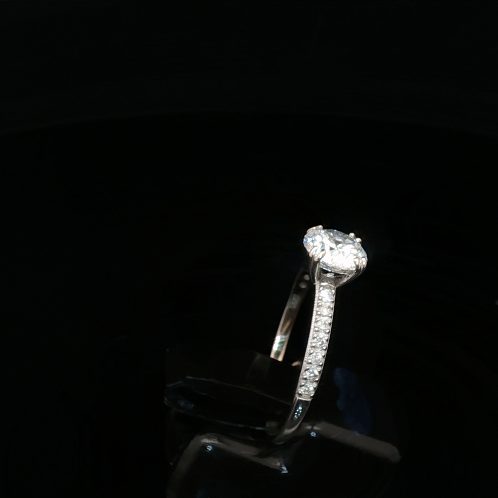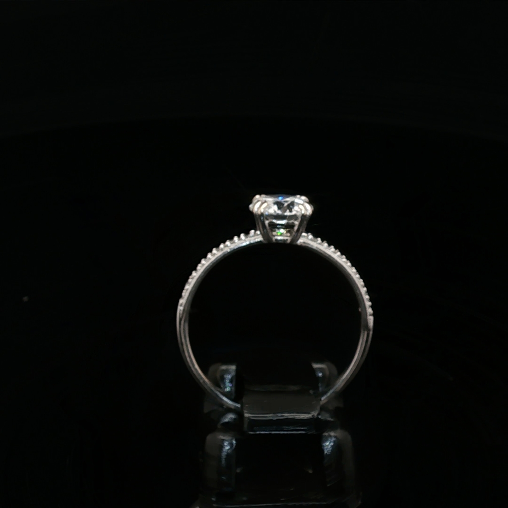 Radiant in its simplicity, this platinum solitaire ring showcases a brilliant round cut lab diamond. The stone's classic cutting style enhances its natural sparkle and allure, making it an exquisite symbol of timeless elegance and commitment. Mounted on a polished white gold band, this piece captures the essence of refined luxury.