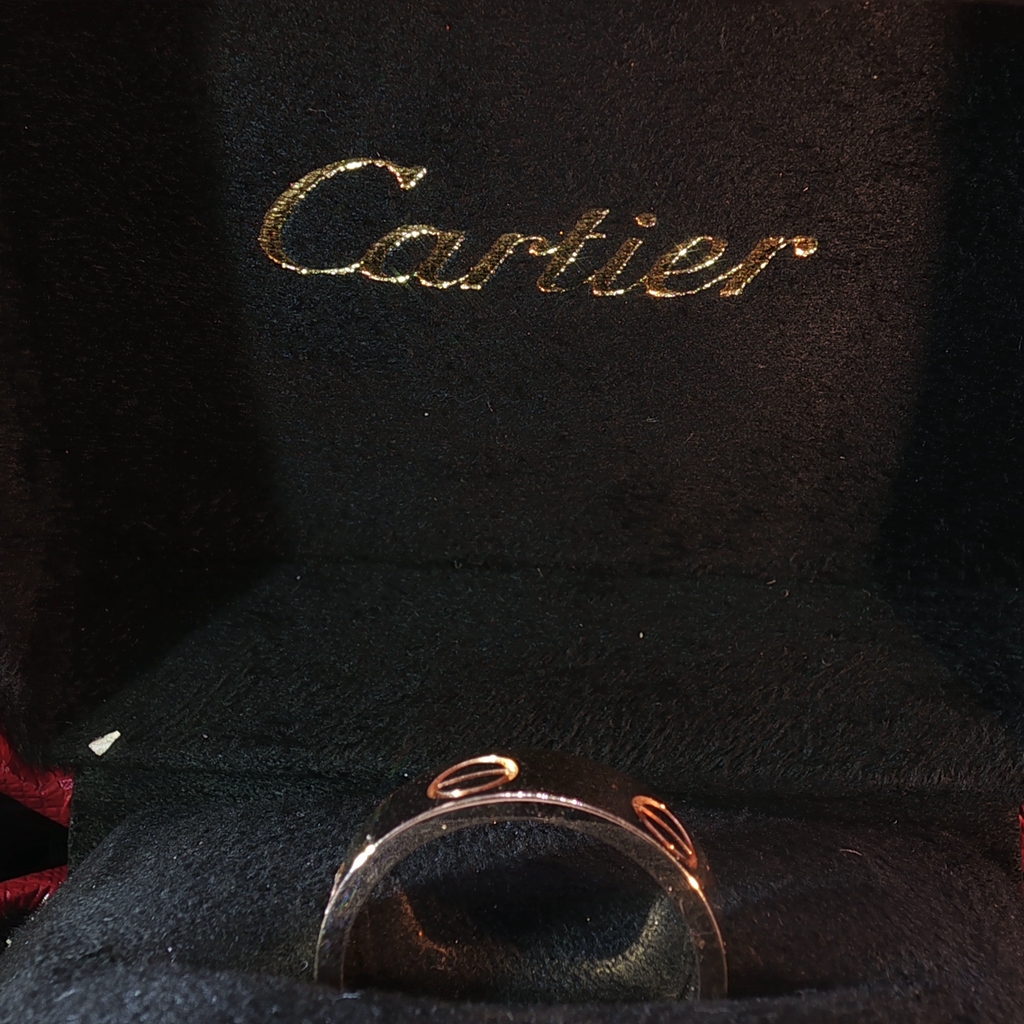 Embrace timeless elegance with this Pre Owned Cartier band ring, crafted in radiant rose gold. This iconic piece features the distinguished Cartier branding and a subtly decorative motif, epitomizing understated luxury. The sleek band offers comfortable wear and makes a statement of sophisticated style. Size 6.5