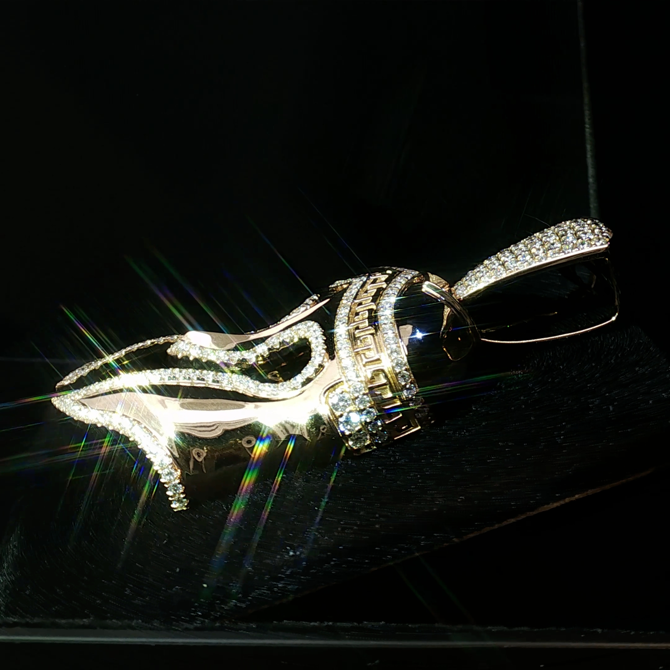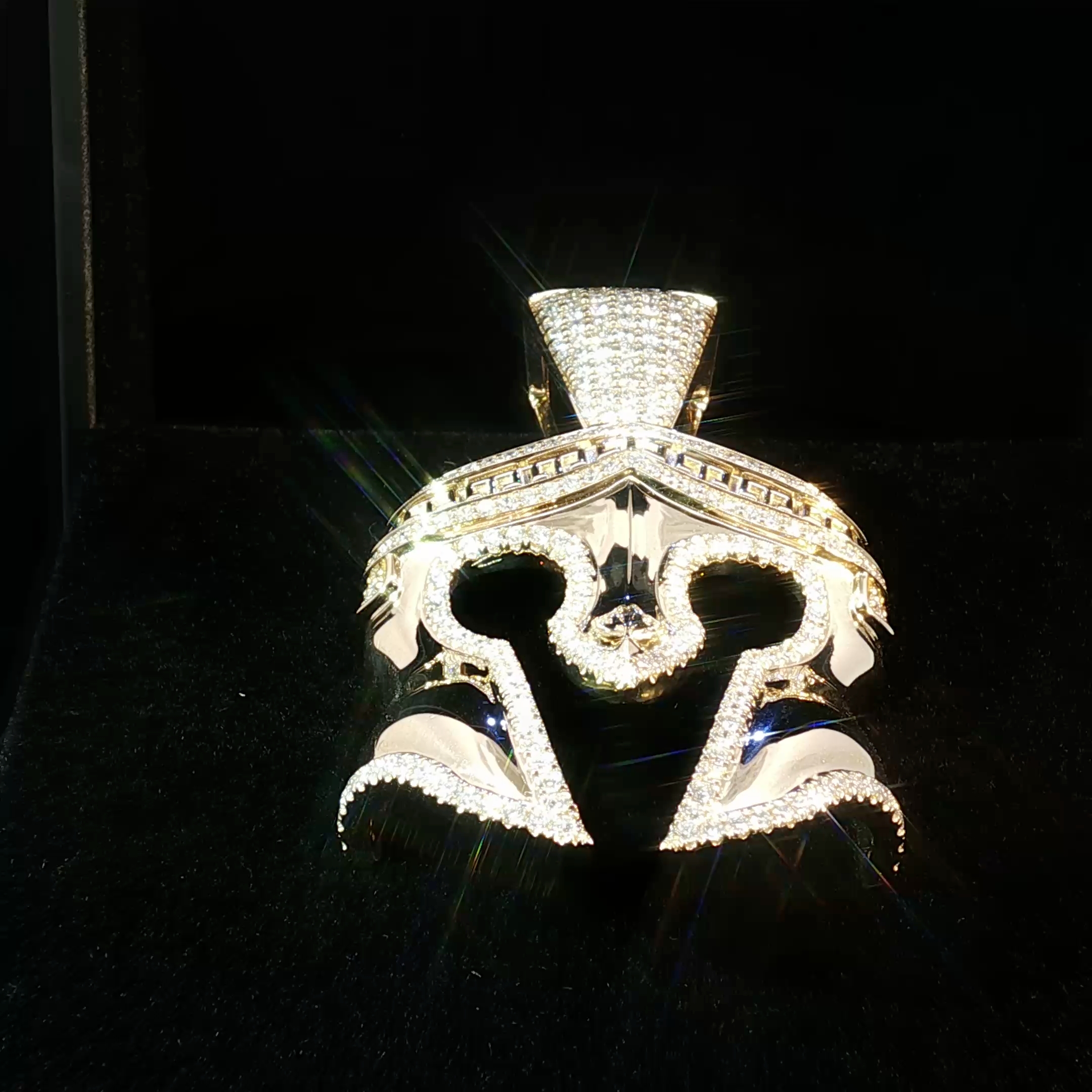 Exude power with this distinctive men's pendant crafted in gleaming yellow gold. The unique design features meticulously set round brilliant cut diamonds, creating a bold and luxurious statement piece that captures attention.