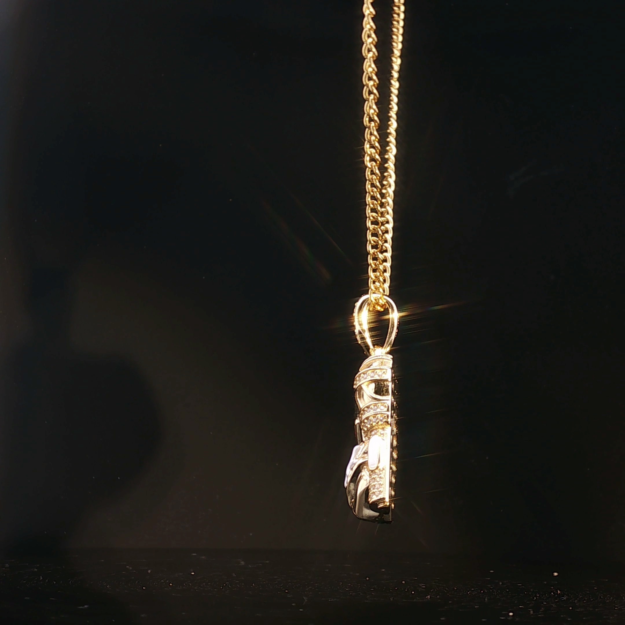 Elevate your style with this radiant yellow gold plated sterling silver charm necklace. This exquisite piece features a round brilliant cut CZ’S , adding a touch of sparkle. The unique design incorporates intricate drawings, making it a captivating addition to any jewelry collection. This charm necklace is suspended vertically, ensuring it catches the light from every angle.