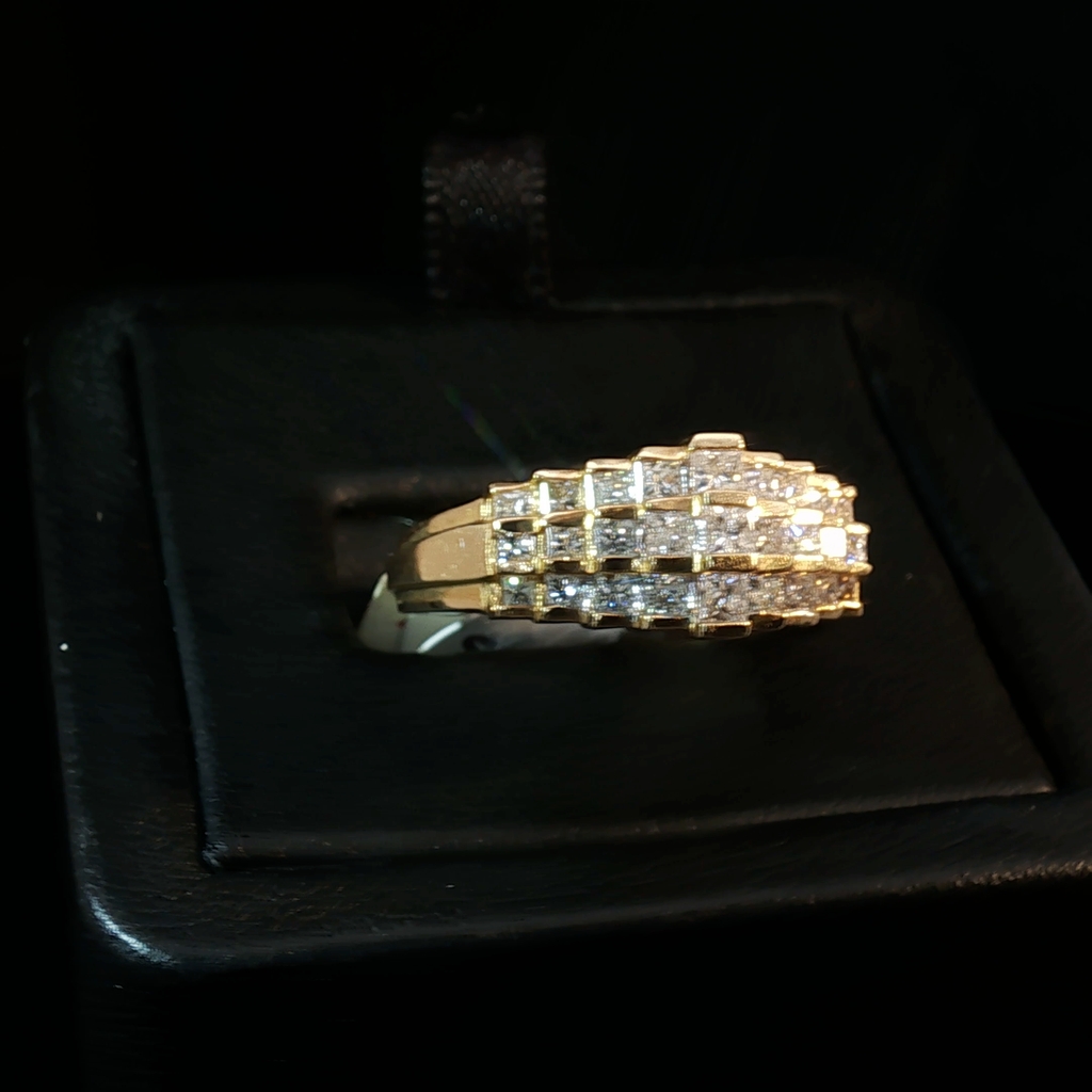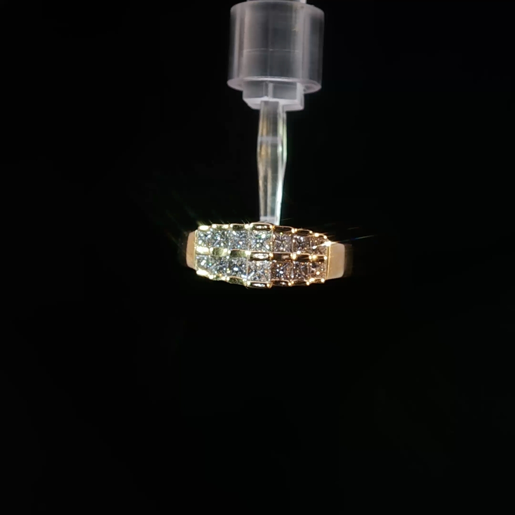 Exquisite multistone ring crafted in radiant 14K yellow gold. This ring features a collection of princess cut diamonds set in a brilliant arrangement. Its design showcases a seamless blend of classic elegance and contemporary style. This luxurious piece adds a touch of sophistication to any ensemble.