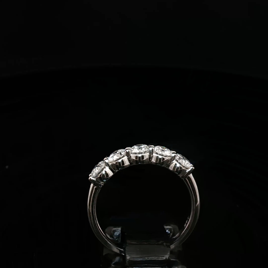 Exquisitely crafted, this multistone ring features a series of round brilliant cut lab grown diamonds, each meticulously set in a refined platinum band with a luxurious white gold finish. The ring showcases a harmonious arrangement of diamonds, celebrated for their exceptional brilliance and fire, designed to capture light from every angle. This elegant design combines timeless sophistication with modern craftsmanship.