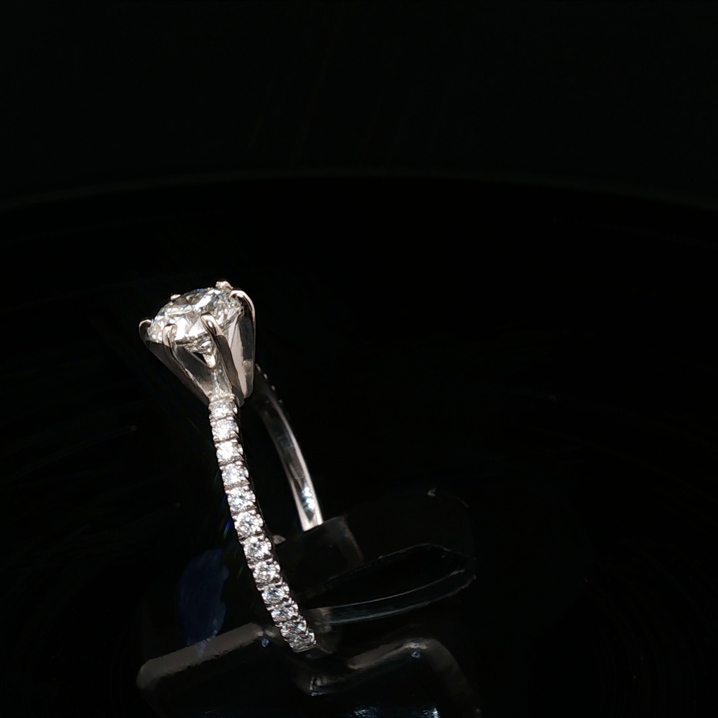 Capture the essence of eternal love with this exquisite platinum engagement ring. Featuring a brilliant round-cut lab diamond, this ring is the perfect symbol of your everlasting commitment. Set in lustrous white gold, the timeless design and superior craftsmanship of this ring will make it a cherished heirloom for generations to come.
